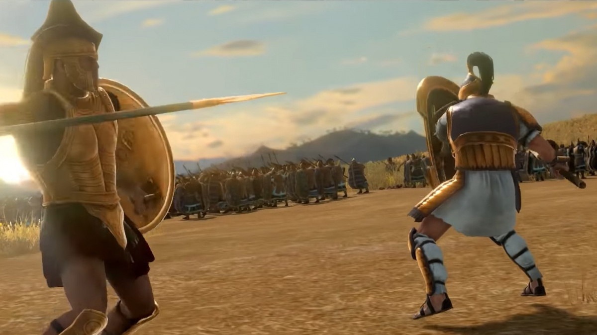 Rozdíl mezi oběma stranami je vidět ve fázi, kdy se trojská garda střetne s tím nejlepším, co má Achilles k dispozici, jeho legendárními Myrmidony, a totálně je rozsekává. Což se změní ve chvíli, kdy se z vysoké trávy (další nový terén) vynoří schovaní egejští vrhači oštěpů a začnou je házet tam, kde Hektorova garda nemá masivní štíty – do zad.