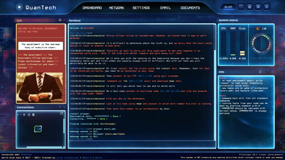 Her o hackování není nikdy dost. Naštěstí se tu a tam objeví nová hra, která zkusí vytěžit nemalý potenciál tématu. Díru na trhu nově hodlá vyplnit slovenské studio Lotus Innovations, které pod vedením Petera Pače vydává předběžnou verzi hackovací simulace World Wide Hack.