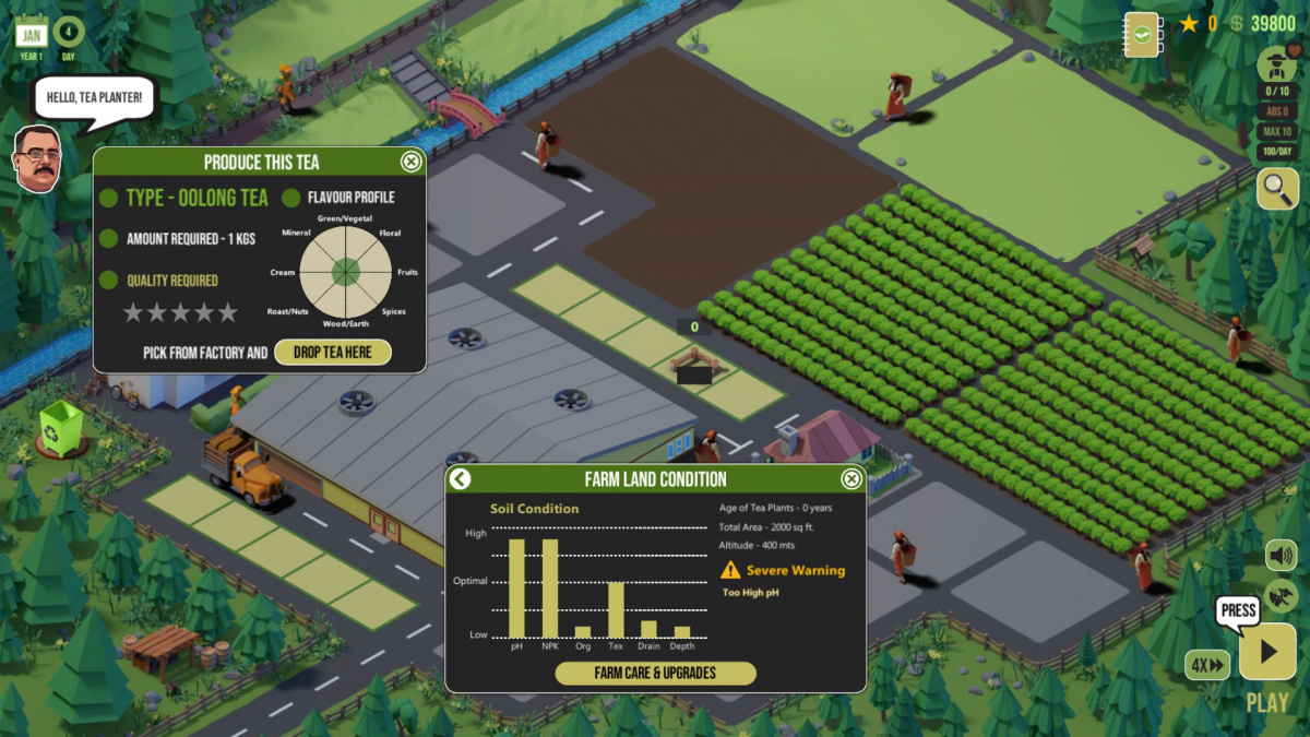 Tvůrci ze studia Flying Robot na hře spolupracovali s jedním z největších asijských pěstitelů čaje Chengmari Tea, aby docílili co největší realističnosti simulovaného farmaření. Budete proto zkoumat složení půdy, do níž se chystáte vysázet čajové rostliny, budete dbát na počasí a roční období a sledovat, kdy bude nejvhodnější přistoupit ke sklizni a poslat lístečky do světa.
