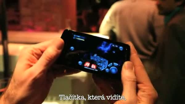 Michael z Fishlabs prezentuje Galaxy on Fire 2 na Xperia PLAY na tiskové konference Sony Ericssonu na Mobile World Congress